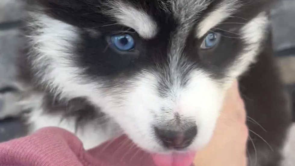 Meet Finn, a handsome and playful Pomsky puppy. Pictures don't do this little guy justice...he is sure to steal your heart with his beautiful markings and great personality. He is raised in the country with lots of room to roam and loves to play with children!